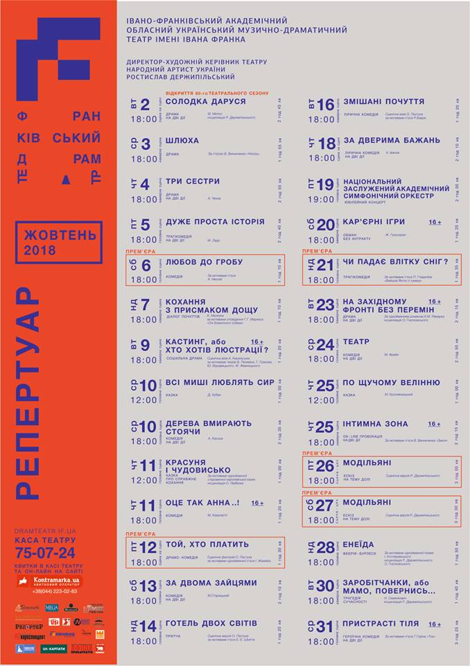 Вже зовсім скоро, 2 жовтня у Івано-Франківському академічному обласному українському музично-драматичному театрі імені Івана-Франка відкривають новий сезон, повідомляє Франик.